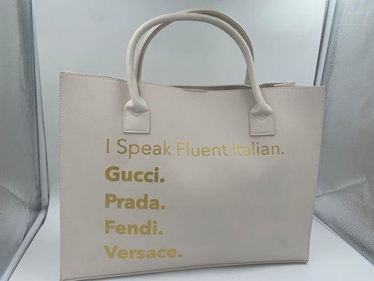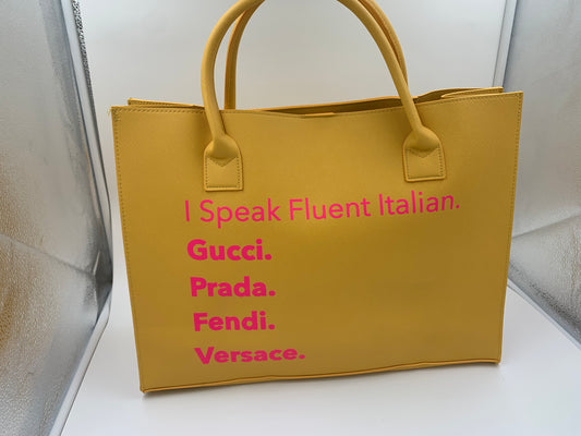 I Speak Fluent Italian Vegan Tote/ Women’s Handbag/ Women’s Bag and Purses