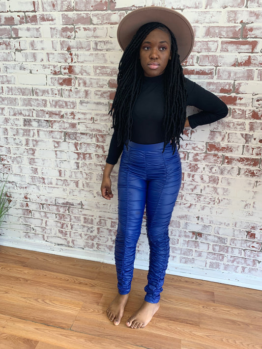 Royal Blue Vegan Leather High Waisted Leggings